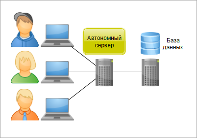 Автономный сервер — это серверное приложение «1С:Предприятия», аналогичное кластеру серверов. Как и кластер серверов, автономный сервер является, с одной стороны, посредником между клиентским приложением и базой данных, а с другой стороны исполняет наиболее объемные операции по обработке данных, передавая клиентскому приложению только необходимую ему выборку данных.