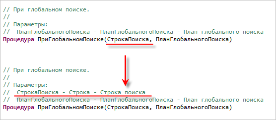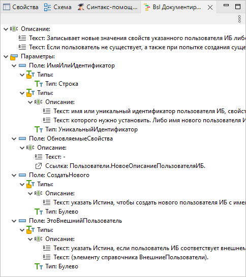 Эту информацию 1C:EDT использует и показывает точно так же, как аналогичную информацию для системных процедур и функций платформы «1С:Предприятие»: