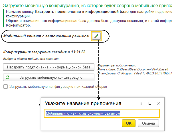 После небольшого ожидания на странице Загрузка конфигурации появится имя загруженной мобильной конфигурации, которое вы можете изменить, нажав на значок карандаша.