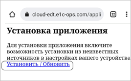 Затем откройте в браузере на мобильном устройстве полученную ссылку и нажмите Установить/Обновить.