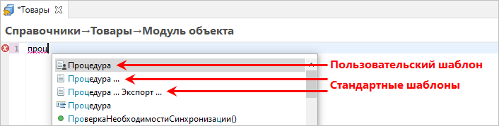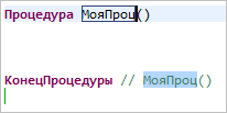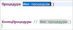 Значение параметра Имя процедуры используется, во-первых, как подсказка для ввода. Оно отображается в маркере после вставки шаблона.