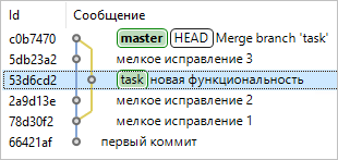 Важно: Имейте в виду, что возвращение к предыдущему состоянию после коммита слияния фактически означает то, что изменения, которые были во вливаемой ветке task, больше не попадут в основную ветку master. Если впоследствии вы внесете изменения в task и захотите снова влить эту ветку в master, то вольются только те изменения, которые были выполнены в task после «отмены» коммита слияния.