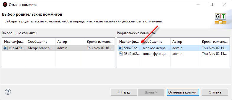 - Нажмите Отменить коммит.