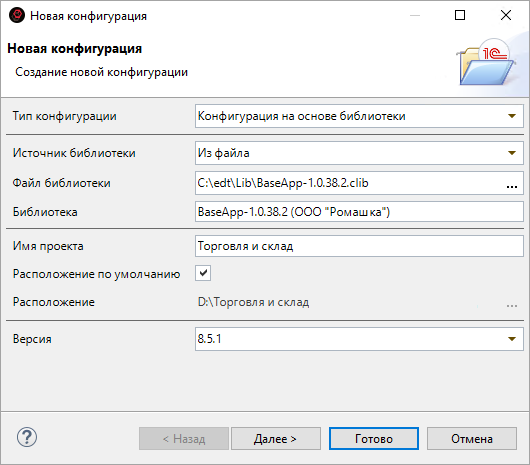 Экспорт в информационную базу, запуск и отладка библиотечного проекта выполняются так