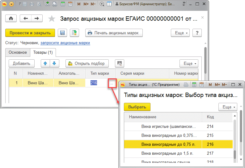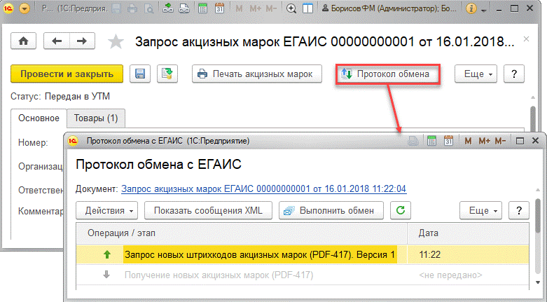 Порядок работы c документом Запрос акцизных марок ЕГАИС: