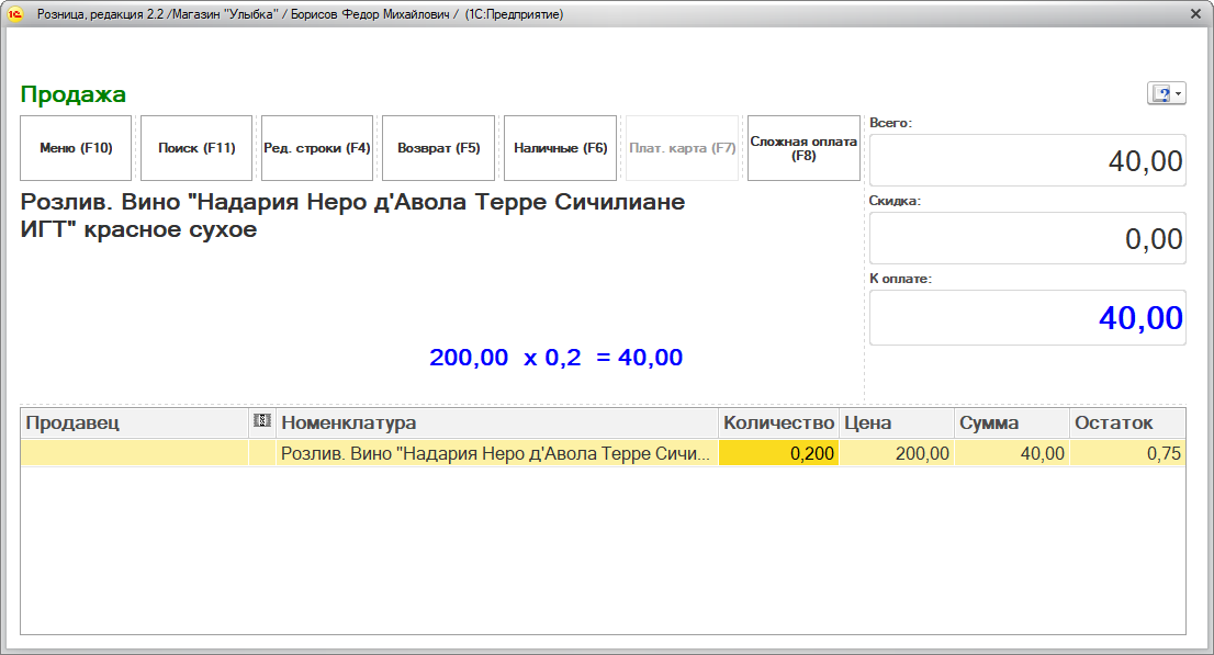 При успехе товар добавляется в чек, иначе продажа данного товара отменяется. После этого кассир регистрирует оплату, пробивает чек.