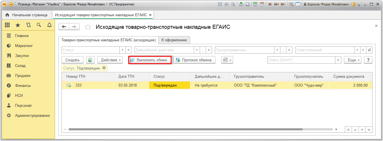 - В "ручном" режиме по кнопке Выполнить обмен.