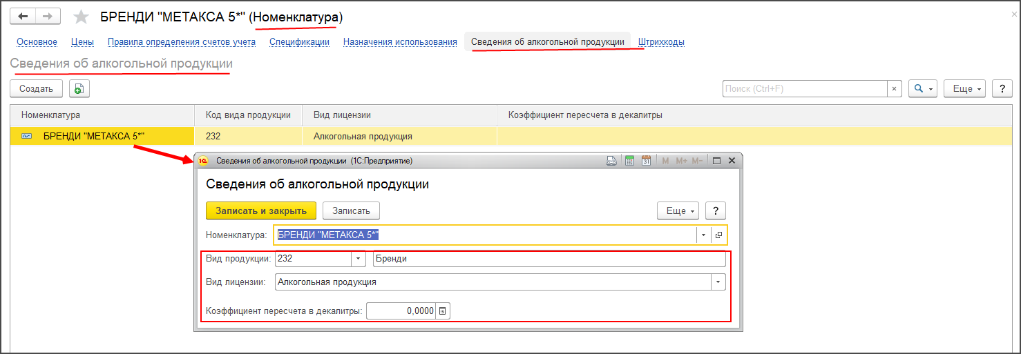 После включения функциональности в форме элемента справочника Номенклатура появится новая закладка "Сведения об алкогольной продукции" для работы с ЕГАИС (Рис. 3).