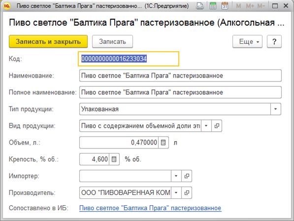 Для номенклатуры, относящейся к алкогольной продукции, должны быть заполнены реквизиты группы Сведения по алкогольной продукции: