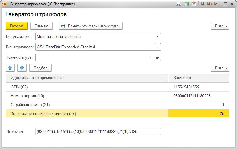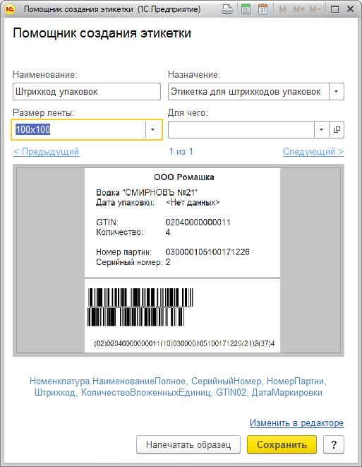 сформировать свои штрихкоды для имеющейся упаковки по кнопке