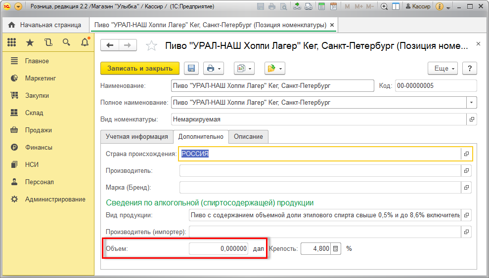- Выбрать номенклатуру, которая не определилась автоматически по алкогольной продукции.