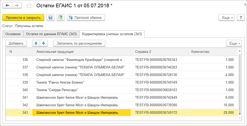 Корректировка остатков ЕГАИС