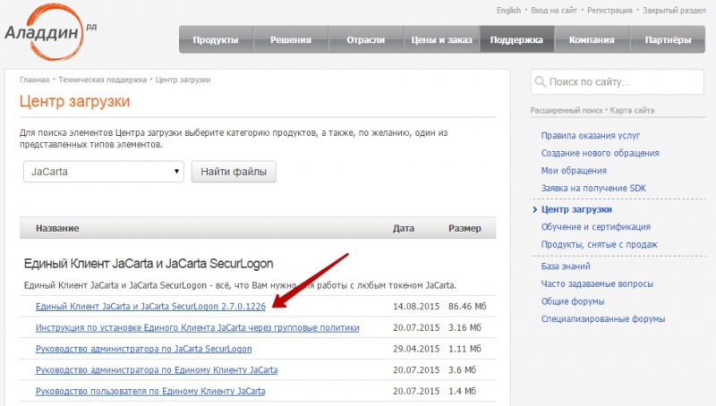 Для корректной работы с ЕГАИС и УТМ необходимо установить «Единый клиент JaCarta» (рис. 1). Да скачивания дистрибутива клиента и инструкции перейти по ссылке.