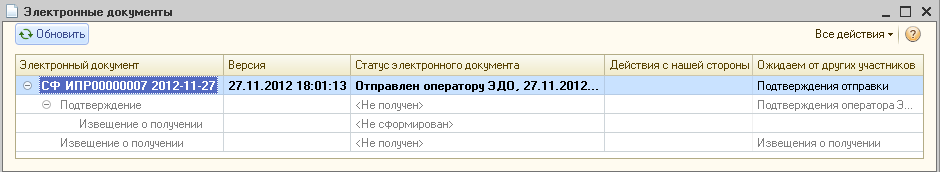 а в форме Электронные документы (Таблице состояния) будет содержаться информация об ожидании действия со стороны других участников обмена (рис. 8).