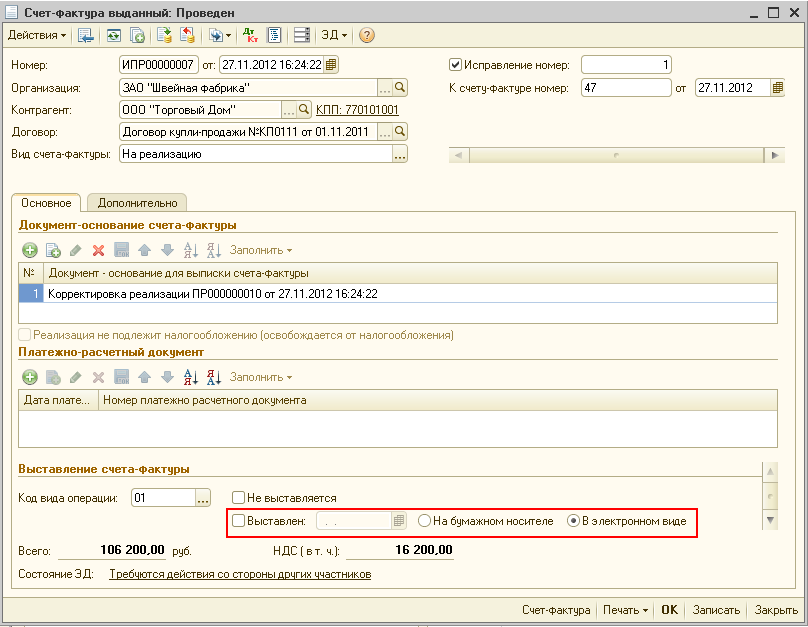 Важно помнить, что исправленный счет-фактура в электронной форме до момента получения извещения от покупателя о его получении: