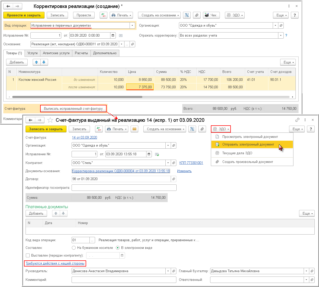 Формирование, подписание и отправка исправленного ЭСФ