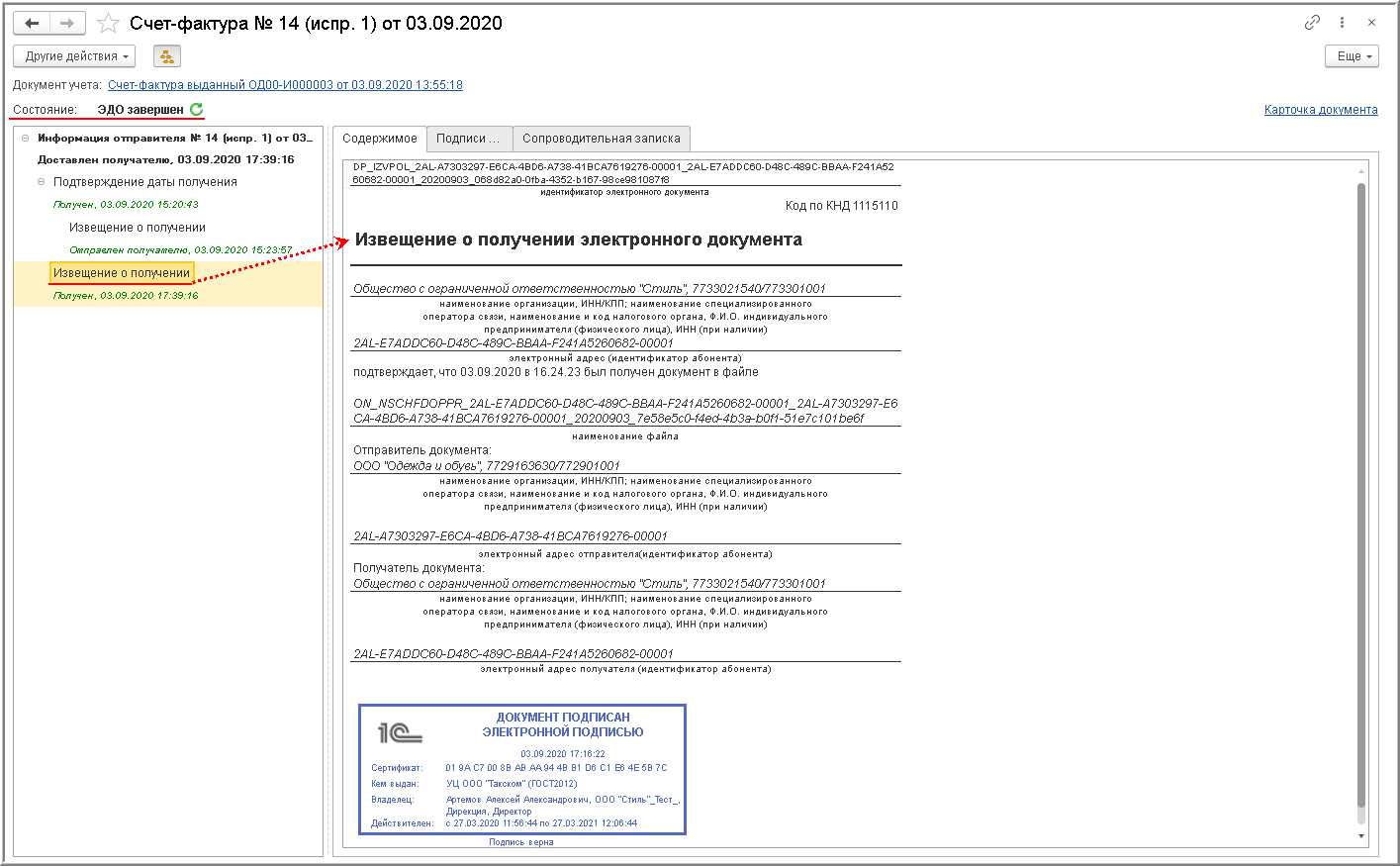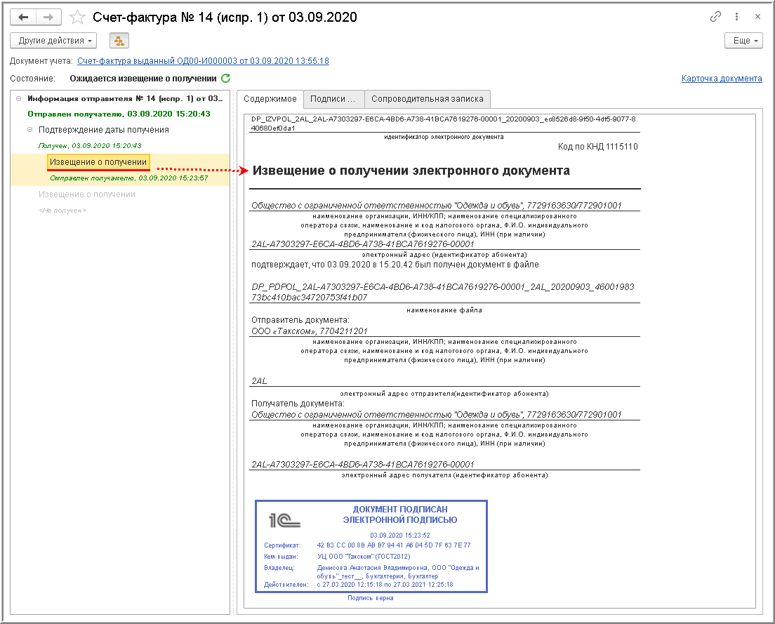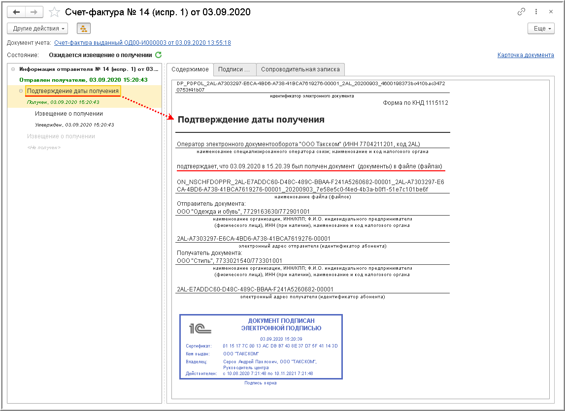 ВНИМАНИЕ! С 01.07.2021 в связи с началом применения Порядка обмена, утв. Приказом № 14н, у продавца отсутствует обязанность формировать извещение о получении подтверждения оператора ЭДО.