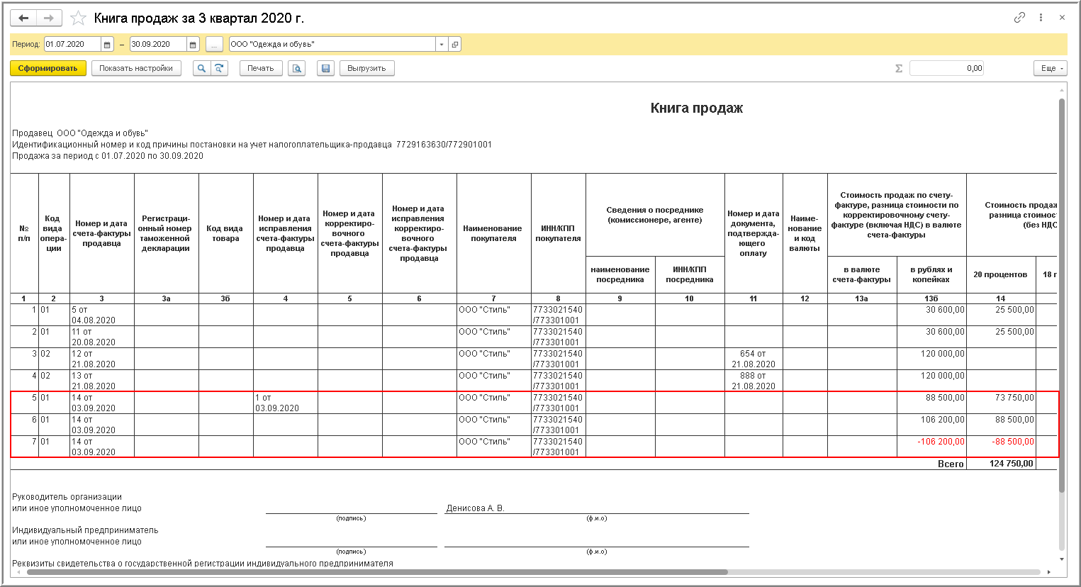 Напомним, что регистрация исправленного счета-фактуры в книге продаж (дополнительном листе книги продаж) вместе с аннулированием записи по первоначальному счету-фактуре производится сразу после проведения документов "Корректировка реализации" с видом операции "Исправление в первичных документах" и "Счет-фактура выданный" (рис. 9).