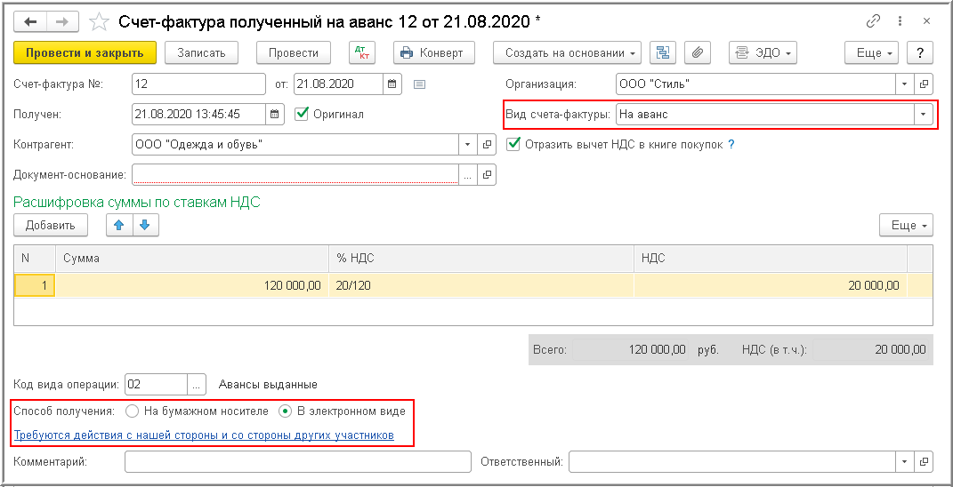 - Утвердить счет-фактуру.
