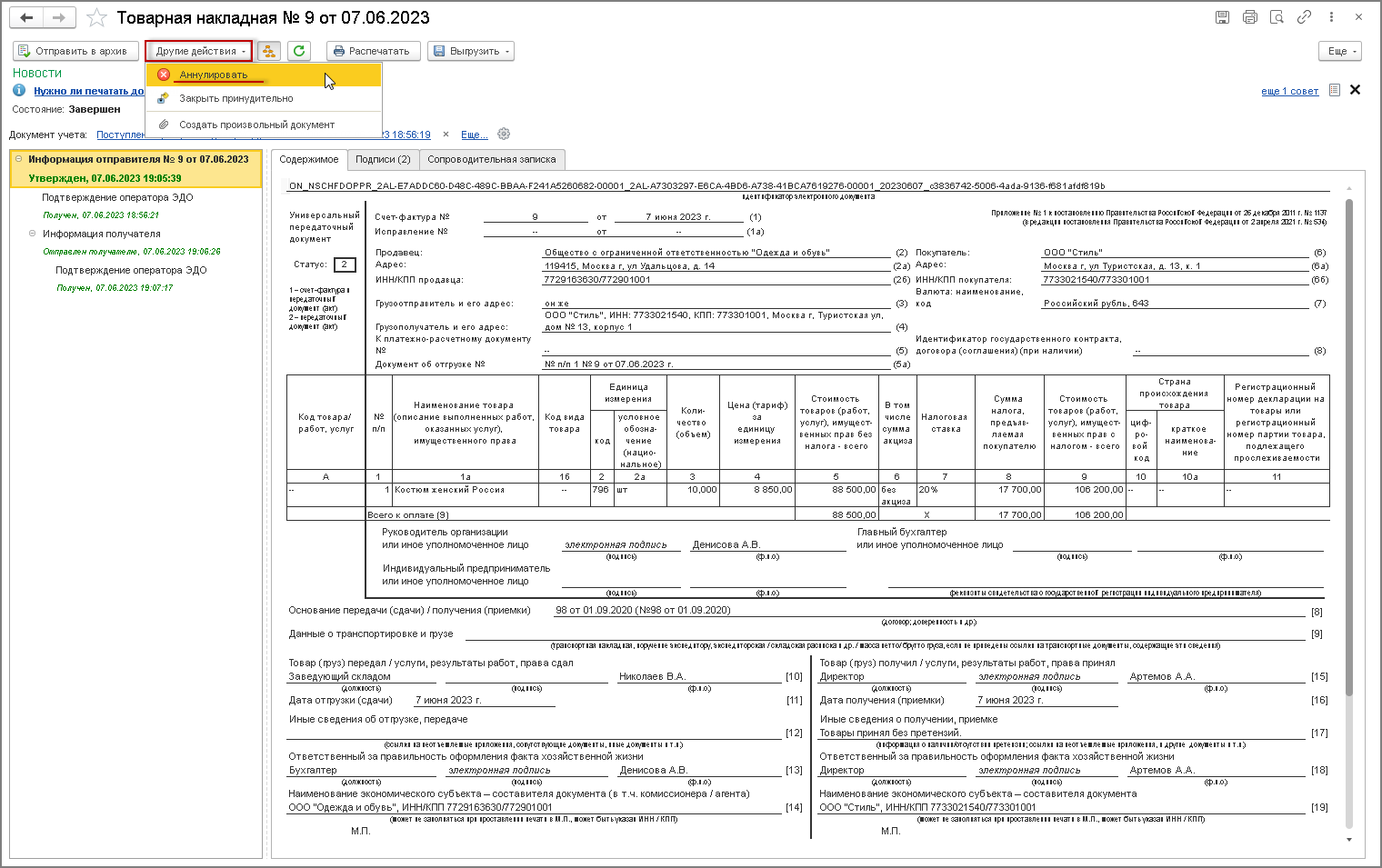- выполнить действия по аннулированию ЭПД на стороне продавца.