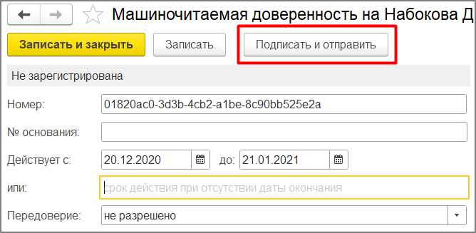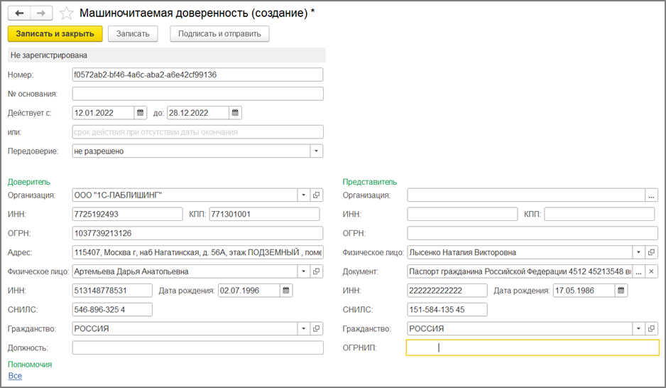- номер доверенности - генерируется автоматически;
