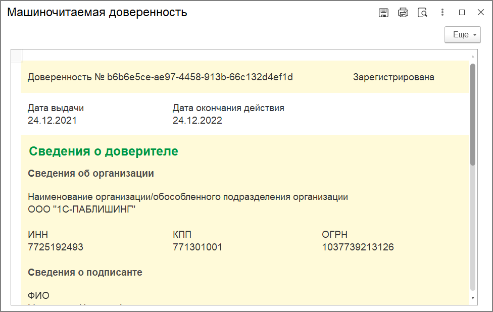 Машиночитаемая доверенность - это электронная доверенность, подписанная усиленной квалифицированной электронной подписью доверителя. Сотрудники могут подписывать электронные документы с помощью УКЭП физического лица, прикладывая к ним МЧД.