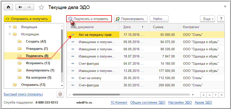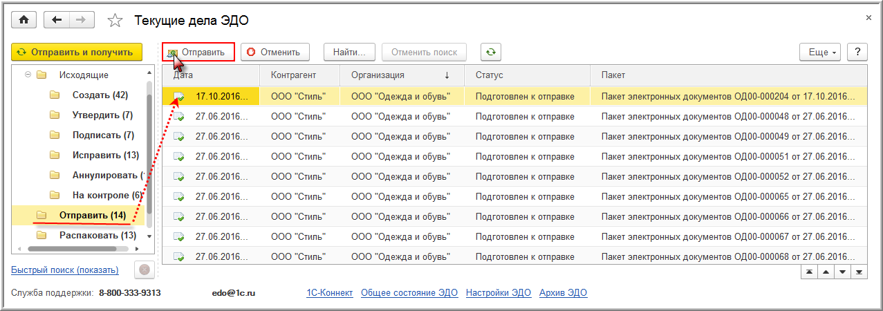 Непосредственная отправка сформированных и подписанных электронных документов зависит от того, как выполнена настройка электронного обмена.