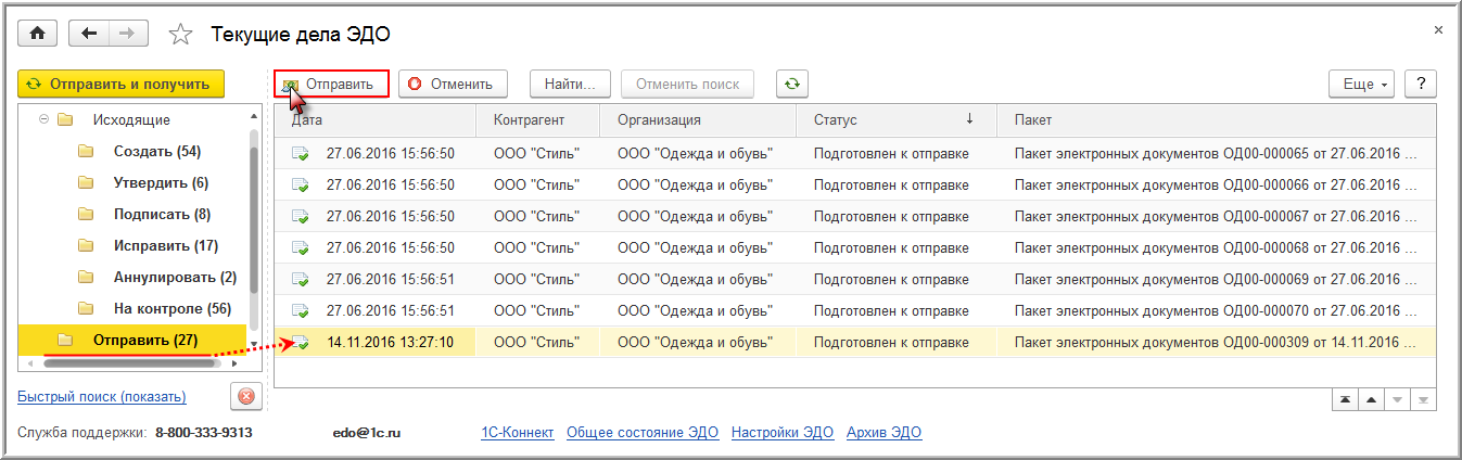 Непосредственная отправка сформированных и подписанных электронных документов зависит от того, как выполнена настройка электронного обмена.