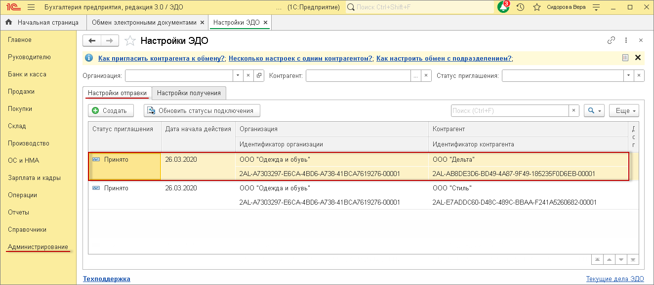 - о настройке обмена - "Создание профиля настроек ЭДО".
