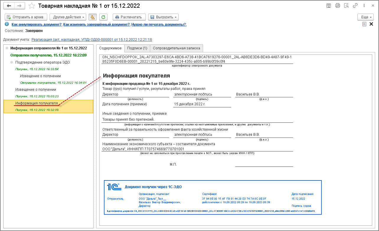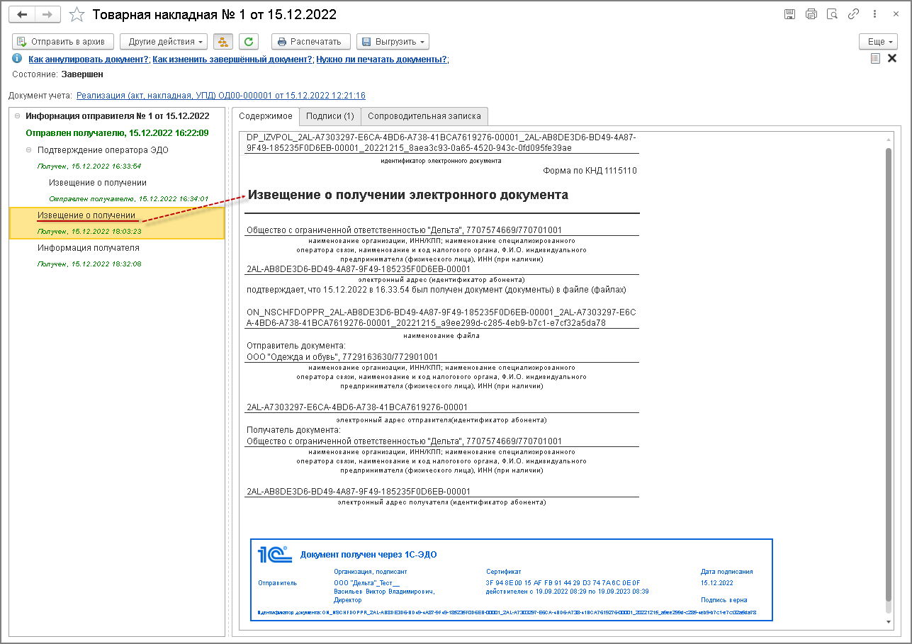 На этом обмен электронным УПД(ДОП) будет завершен.
