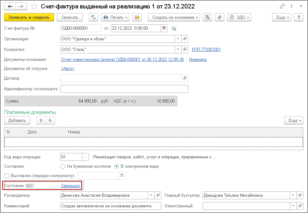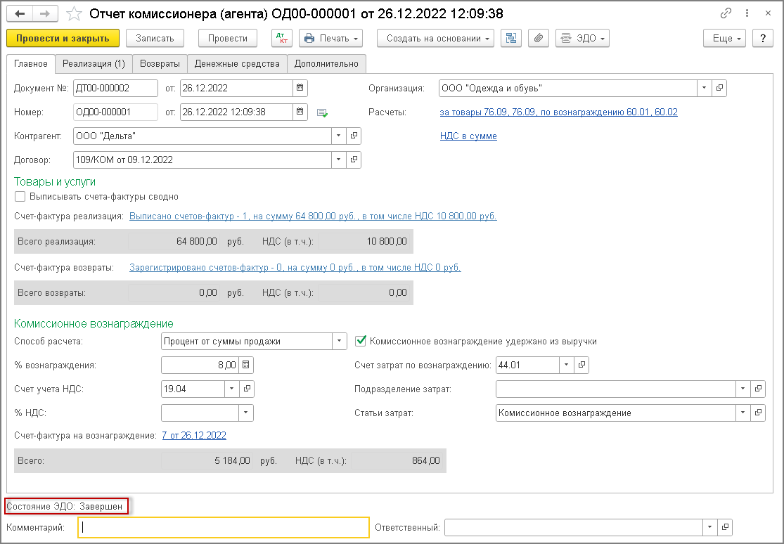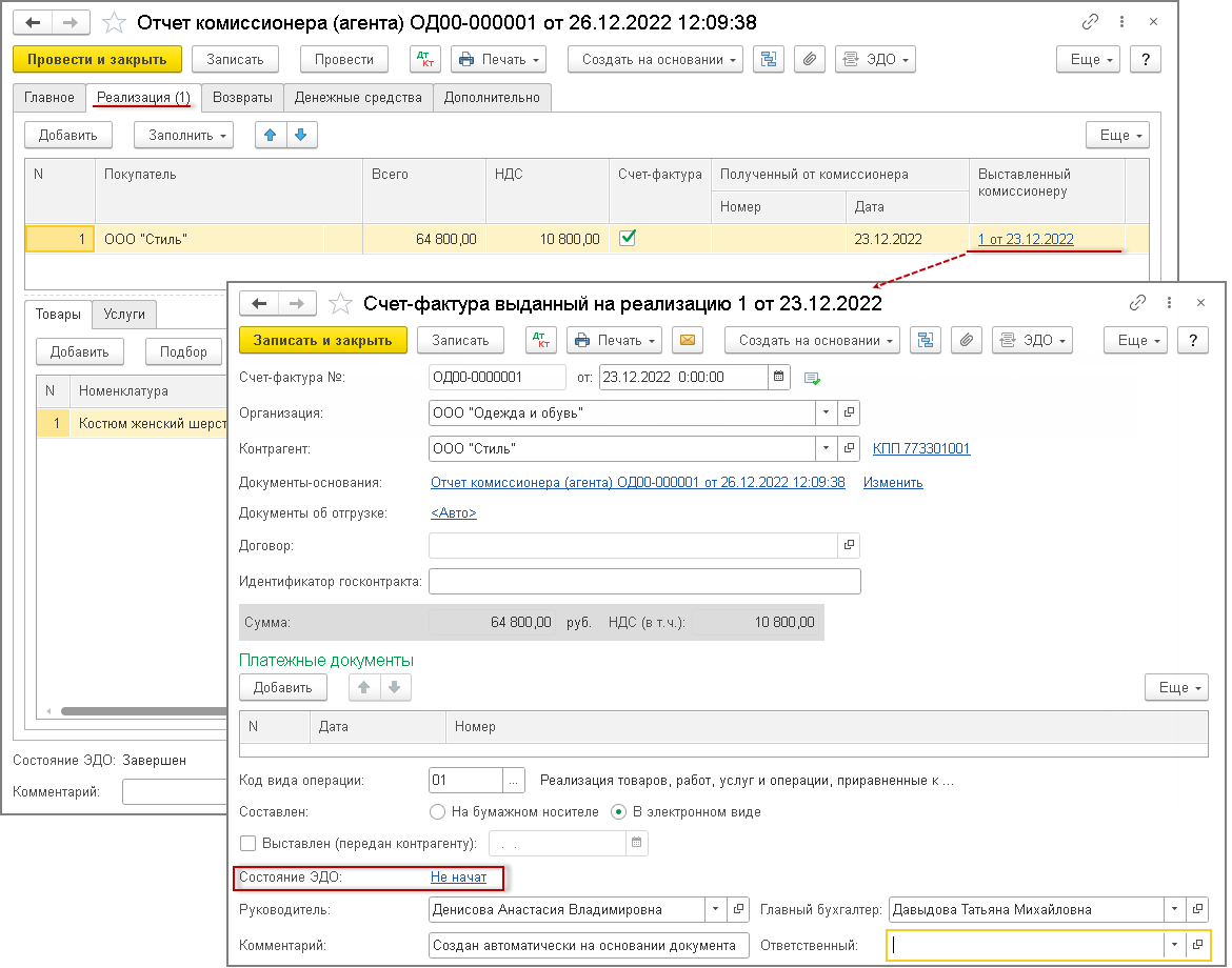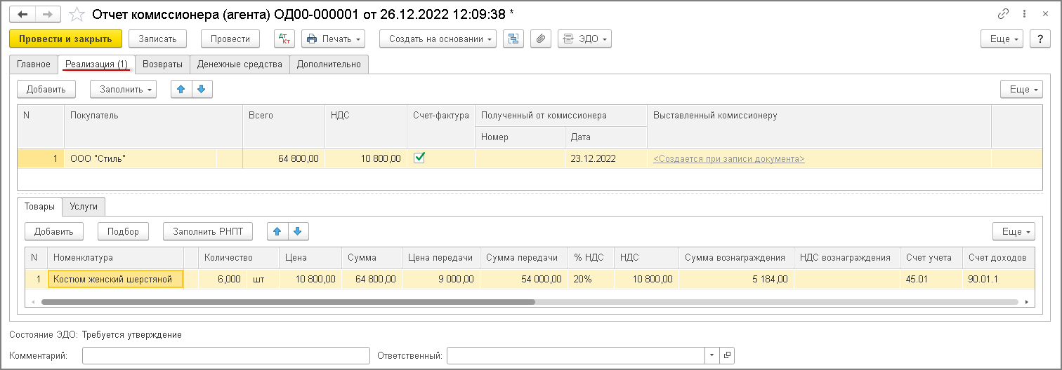 - Сформировать и отправить комиссионеру перевыставленный электронный счет-фактуру на реализованные товары.