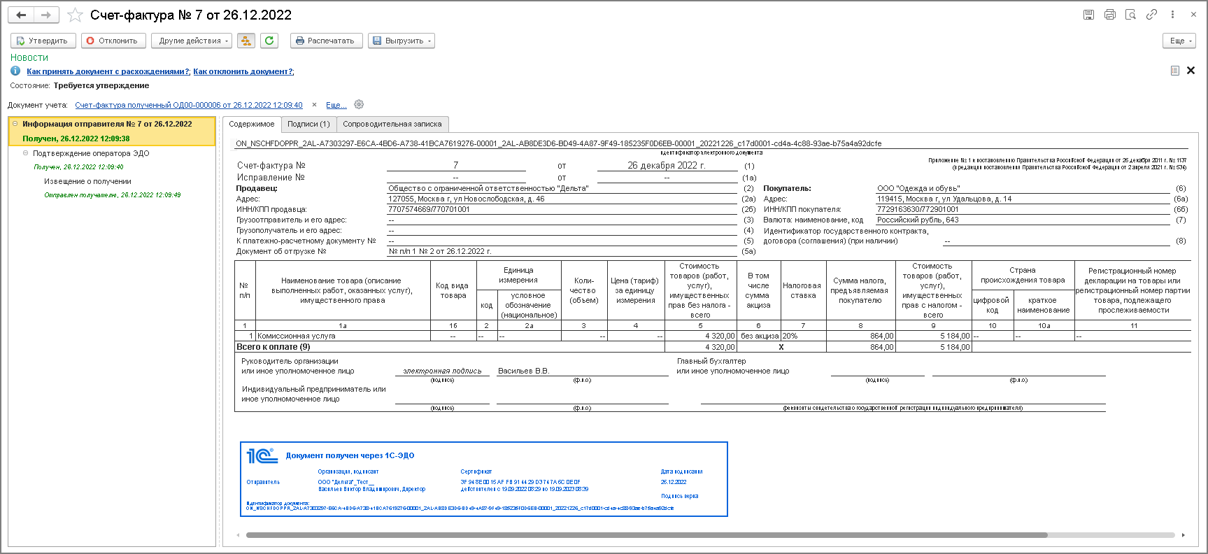 5. Получение от комиссионера электронного счета-фактуры на комиссионное вознаграждение