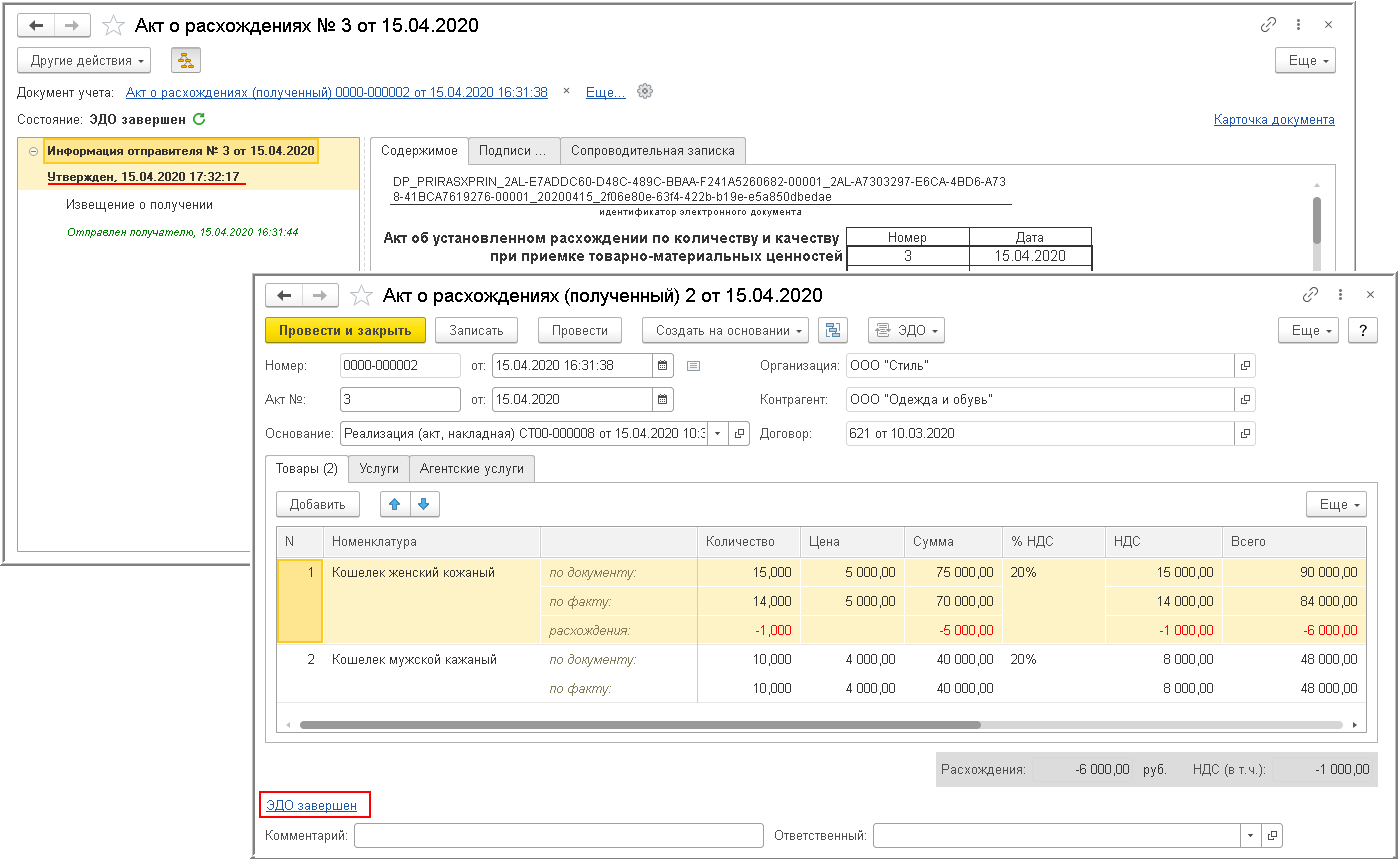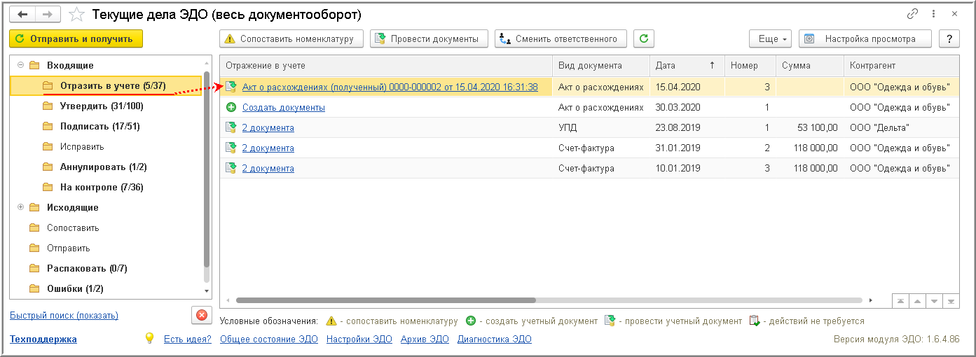 Поскольку УПД подписан покупателем с учетом расхождений, выявленных при приемке, то продавцу кроме УПД (информации покупателя) также поступает электронный документ "Акт о расхождениях".