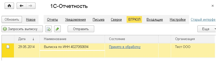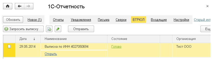 В сервисе 1С-Отчетность реализована возможность получения юридически значимой выписки из Единого государственного реестра юридических лиц (ЕГРЮЛ) и Единого государственного реестра индивидуальных предпринимателей (ЕГРИП).