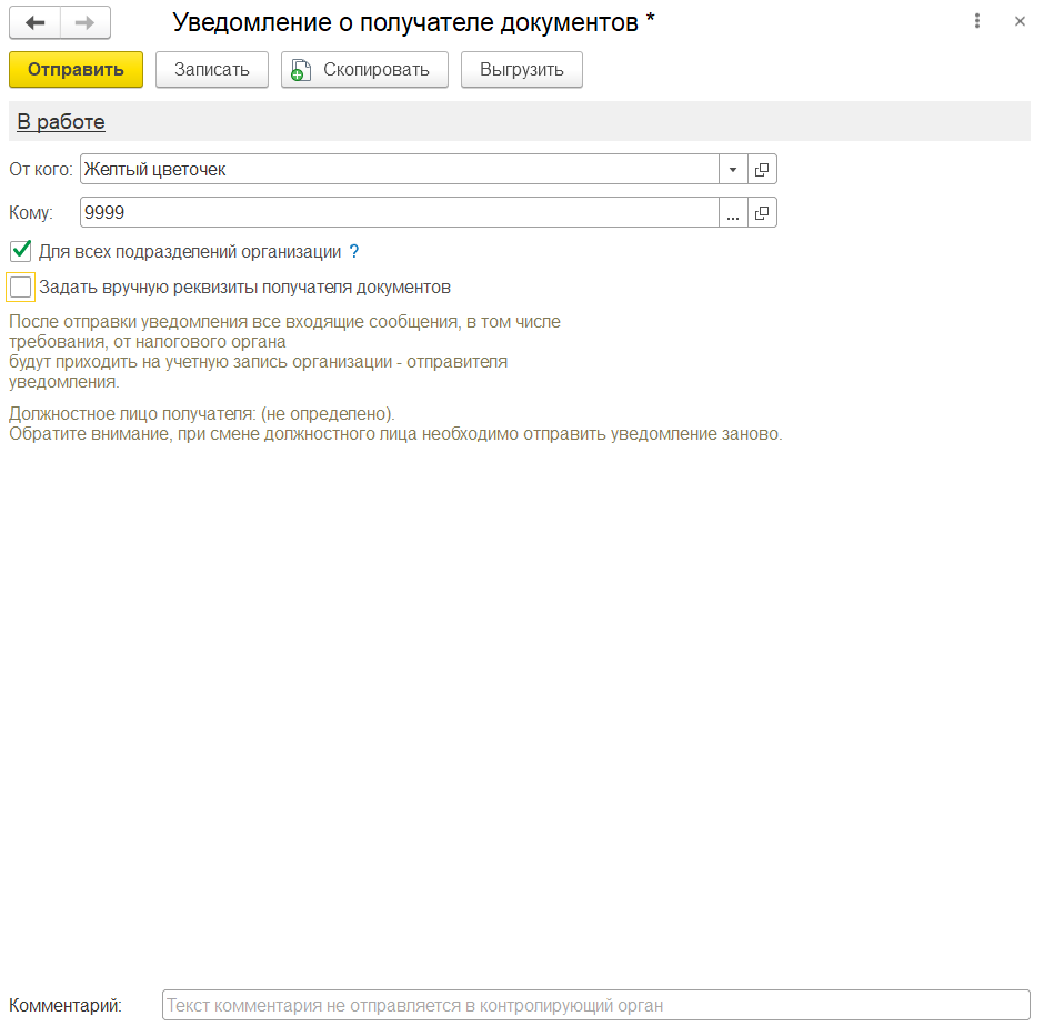 Подготовка и отправка Уведомления о получателе документов