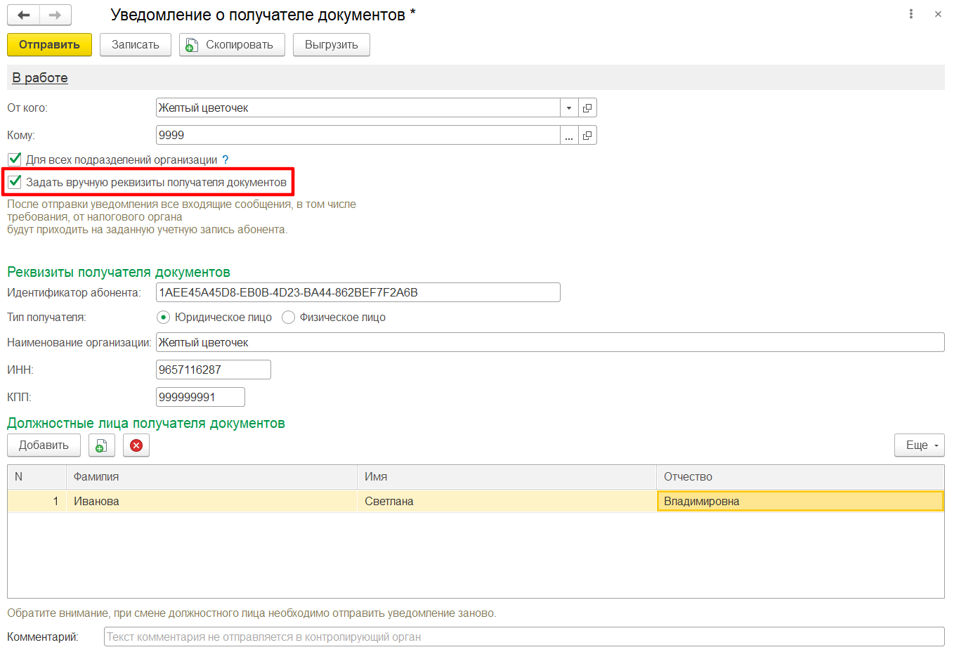 Флажок Задать вручную реквизиты получателя документов (рис. 4) используется в следующих случаях: