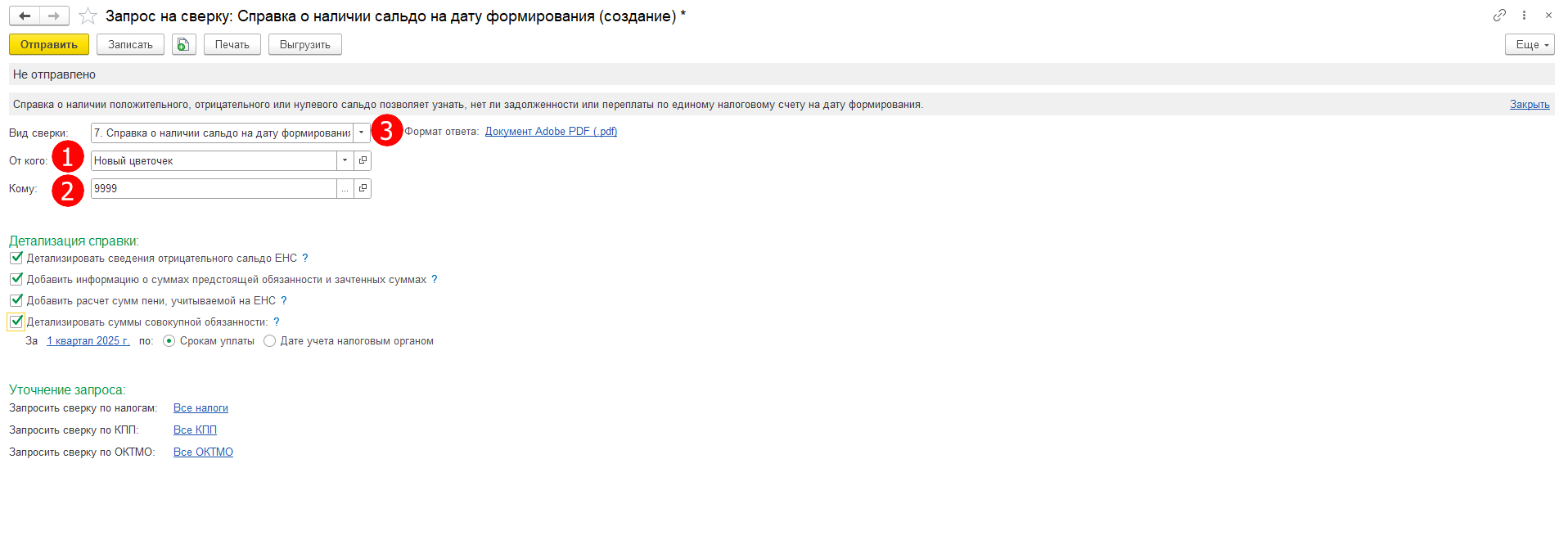 В открывшейся форме запроса на справку о наличии сальдо (рис.2):