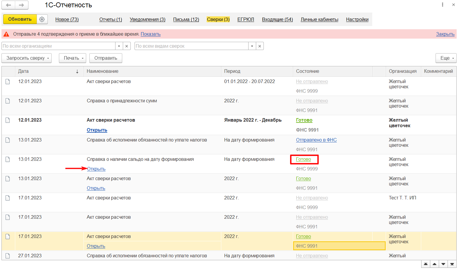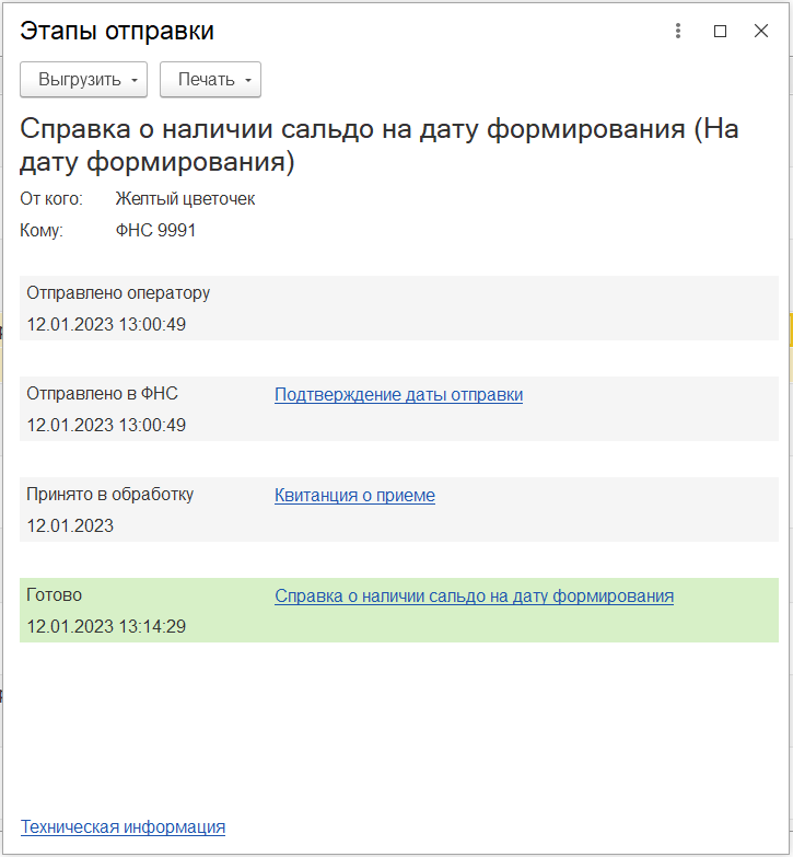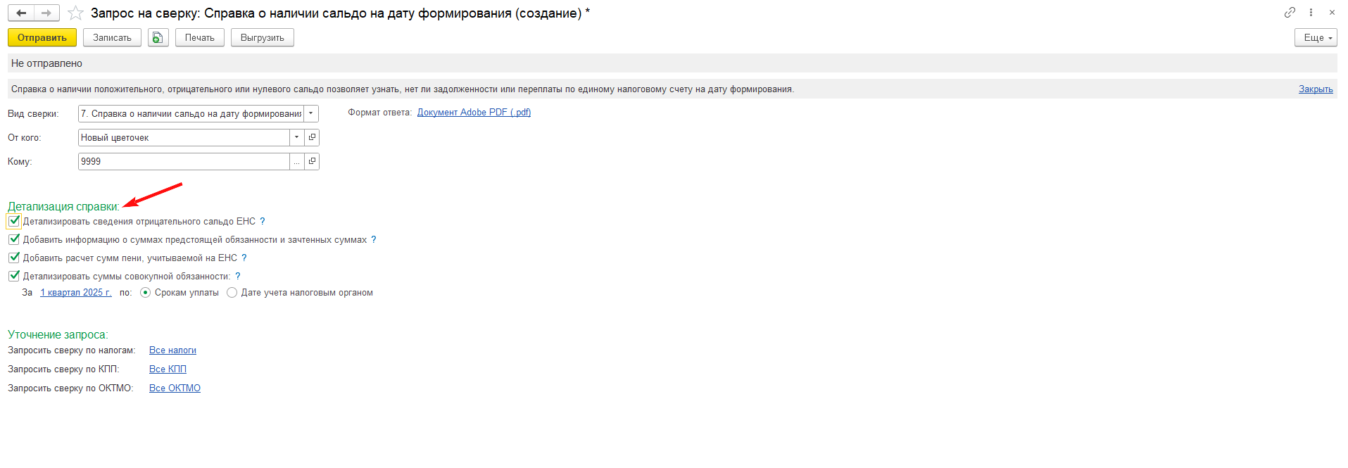 Для того, чтобы на справке о наличии сальдо отображался штамп электронной подписи ИФНС, выбирайте формат ответа .xml