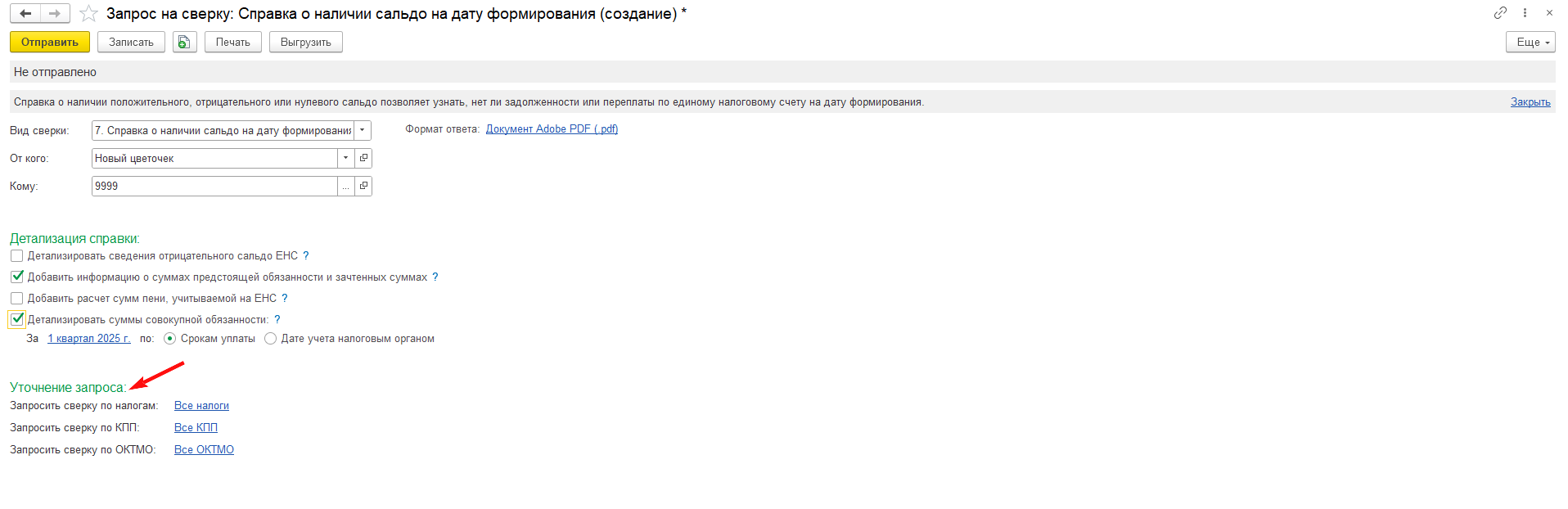Также при детализации справки в части информации о суммах предстоящей обязанности и зачтенных суммах и суммы совокупной обязанности можно уточнить запрос по налогам, КПП и ОКТМО (рис.4).