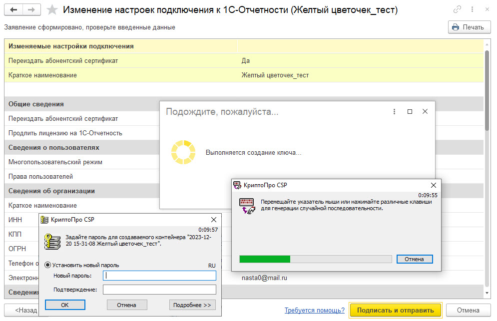 Создание ключа электронной подписи
