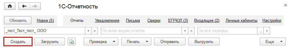 Приведем общую последовательность действий по созданию и отправке нового регламентированного отчета на примере ФНС.