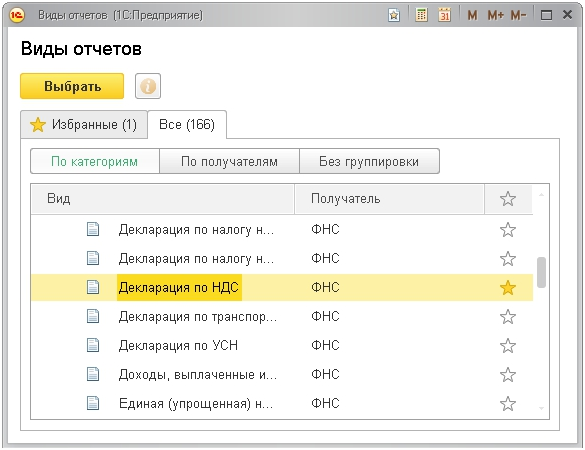 В появившемся списке «Виды отчетов» отметьте нужную форму. Нажмите кнопку «Выбрать»: