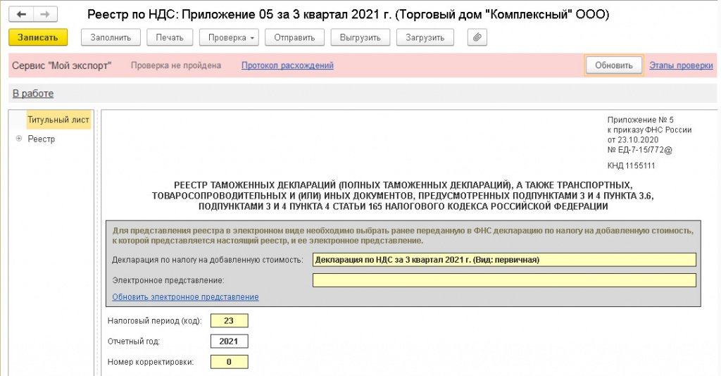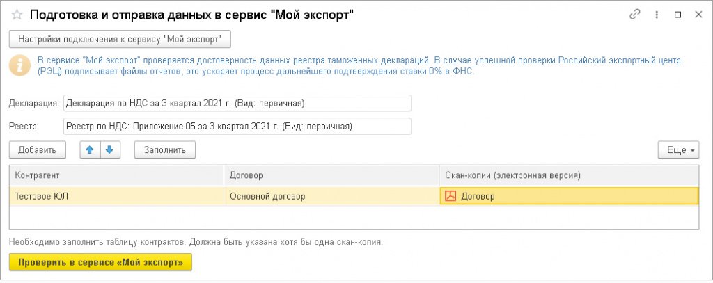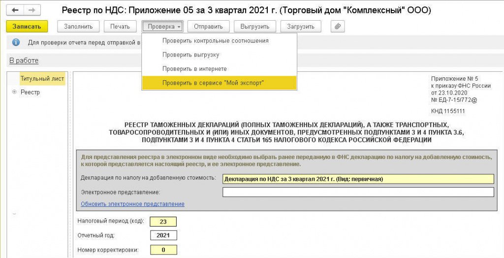 Сервис «Мой экспорт» позволяет экспортерам, не выходя из программы, выполнить автоматическую проверку достоверности данных реестра таможенных деклараций по НДС.