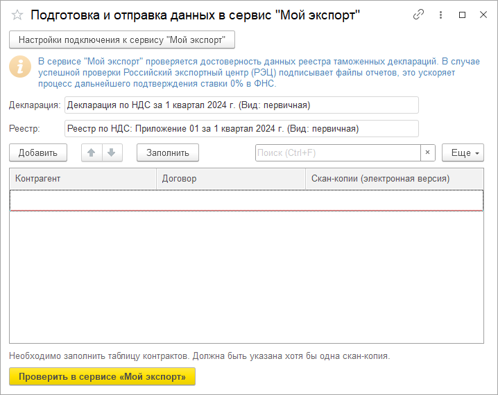 При этом откроется форма подготовки данных для отправки в сервис «Мой экспорт» (рис.4).