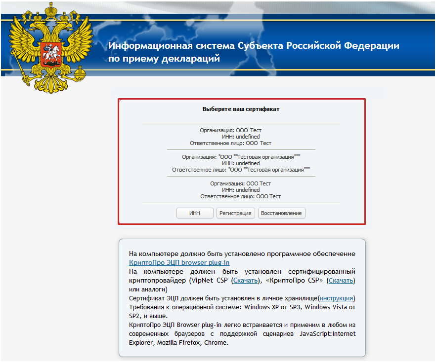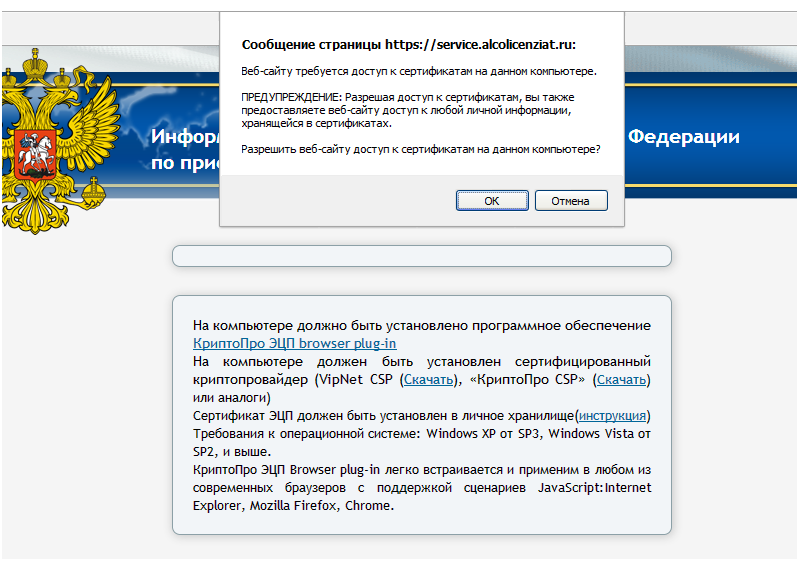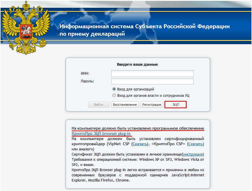 На компьютере должно быть установлено программное обеспечение КриптоПро ЭП browser plug-in.