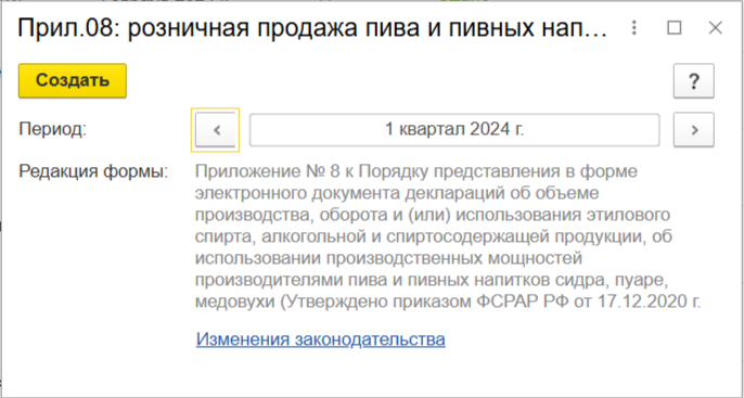 Далее выберите период отчетности и нажмите кнопку «Создать»: