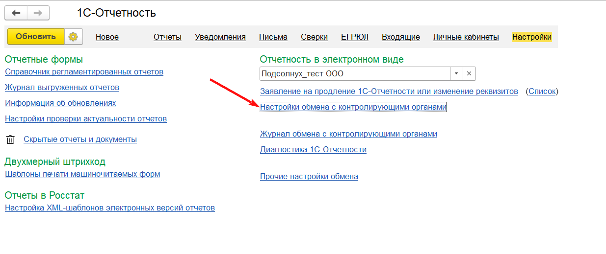 Откройте настройки обмена с контролирующими органами, как это показано на рис. 1.