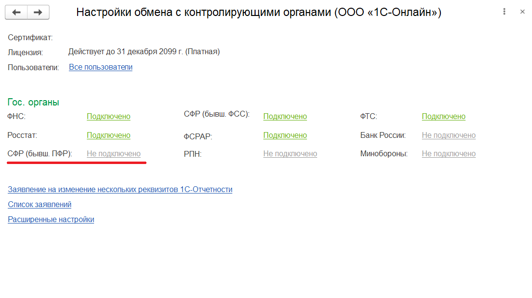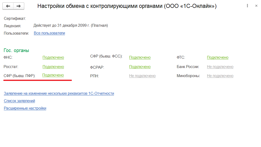 Одной из основных причин изменения настроек подключения к "1С-Отчетности" является изменение состава органов, в которые отправляется отчетность.