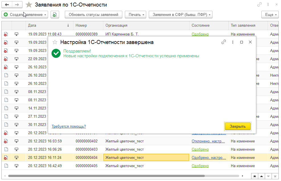 Чтобы добавленный налоговый орган был подключен, необходимо отправить заявление и дождаться его одобрения (рис. 10).