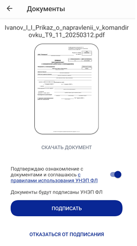 Вид документа на подпись в приложении «Госключ»
